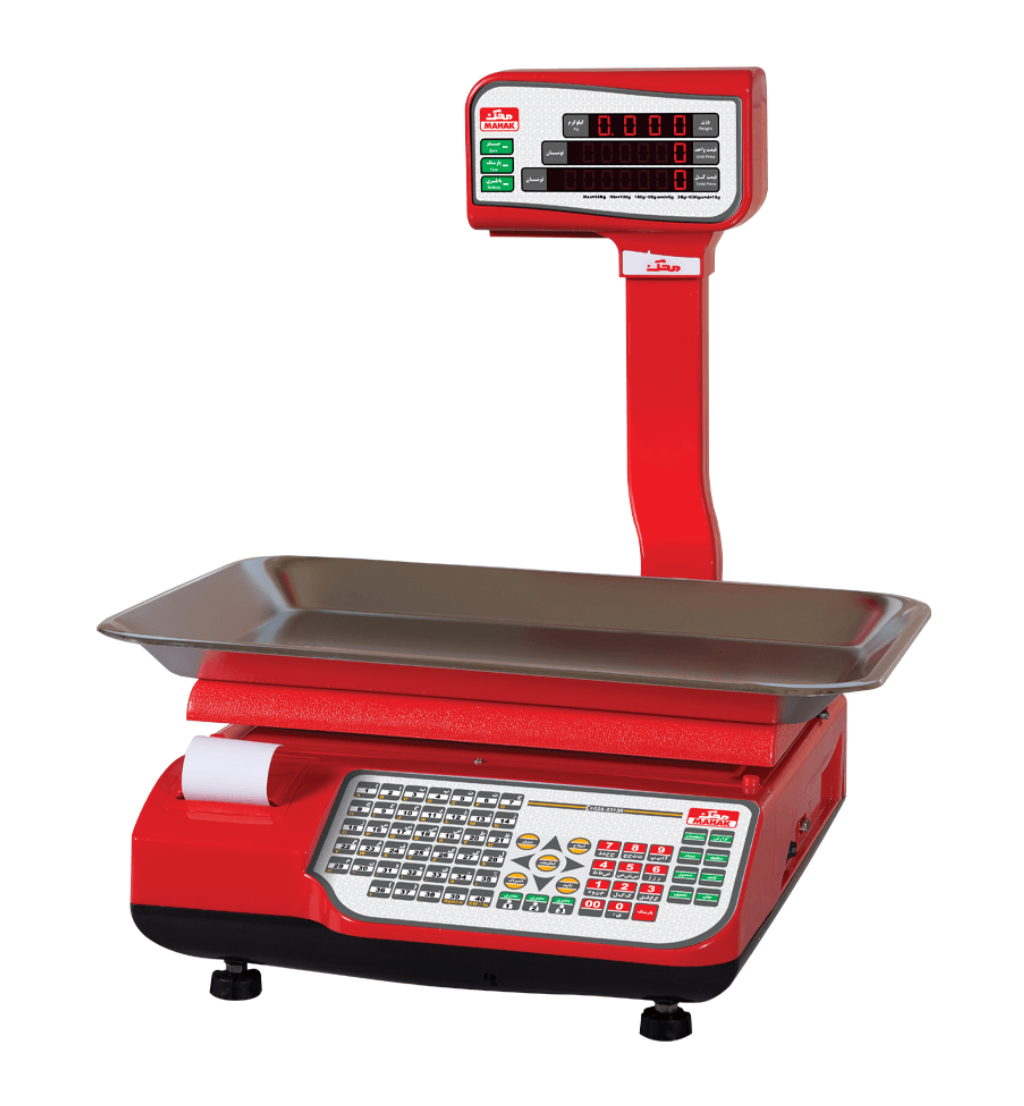 ترازوی دیجیتال فروشگاهی محک مدل پرینتردار AP با ظرفیت ۳۵ کیلوگرم و چاپگر داخلی