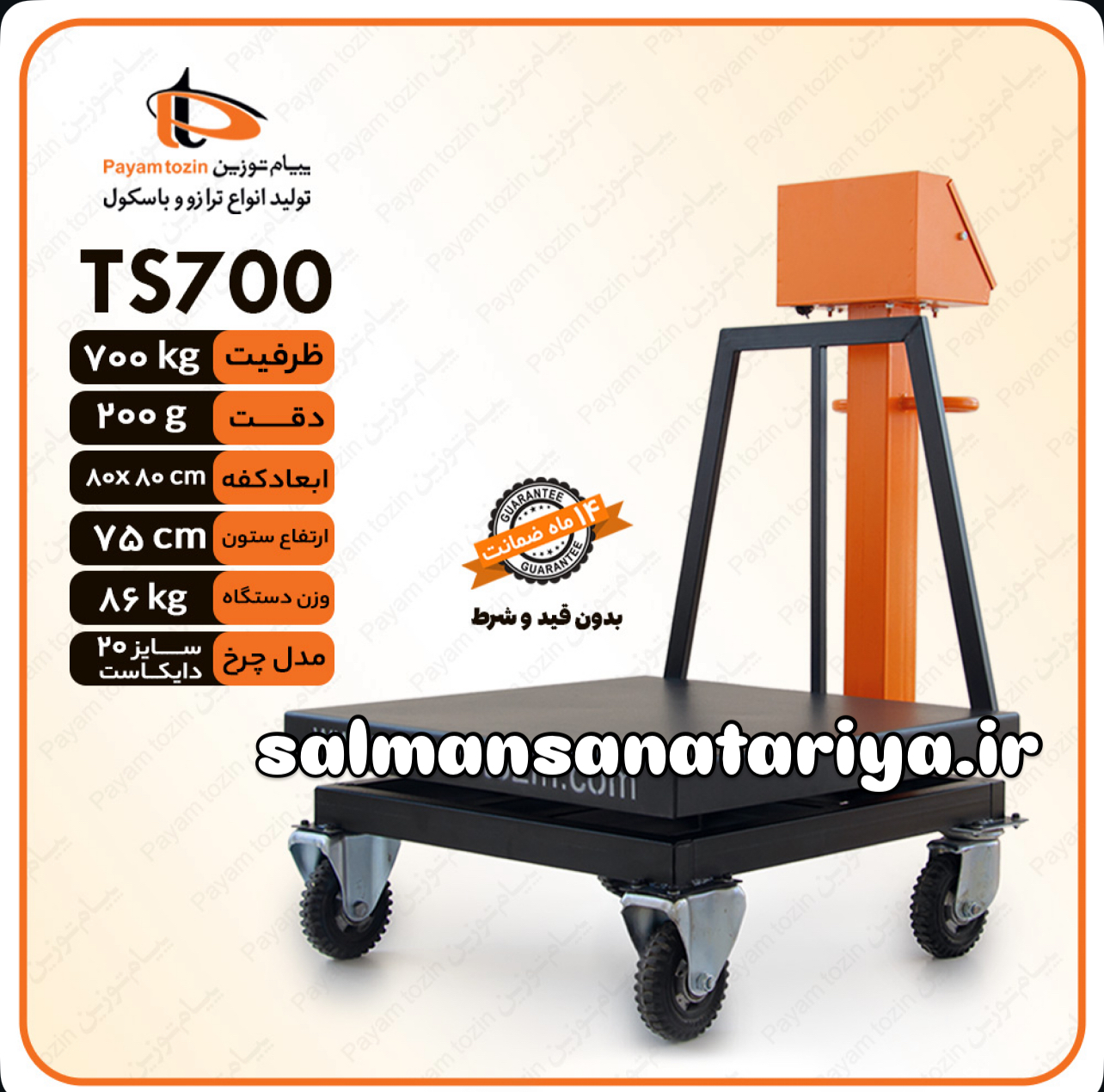 باسکول ۷۰۰ کیلویی چرخدار پیام توزین