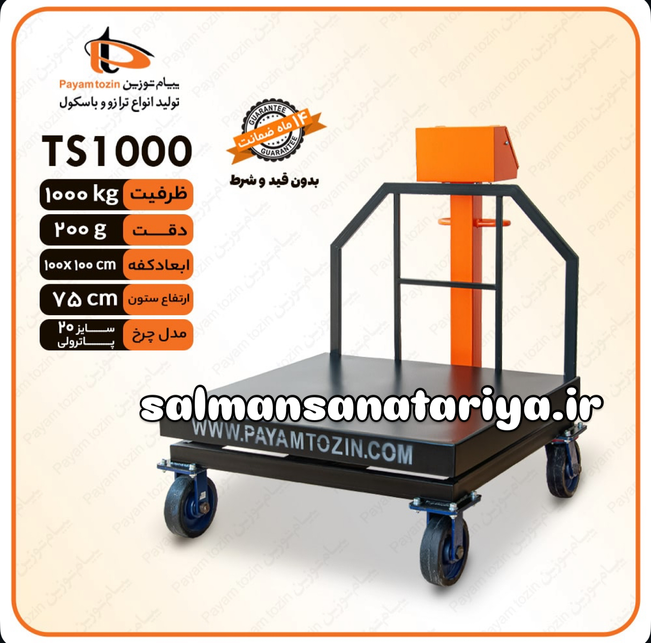 باسکول ۱۰۰۰ کیلویی چرخدار پیام توزین